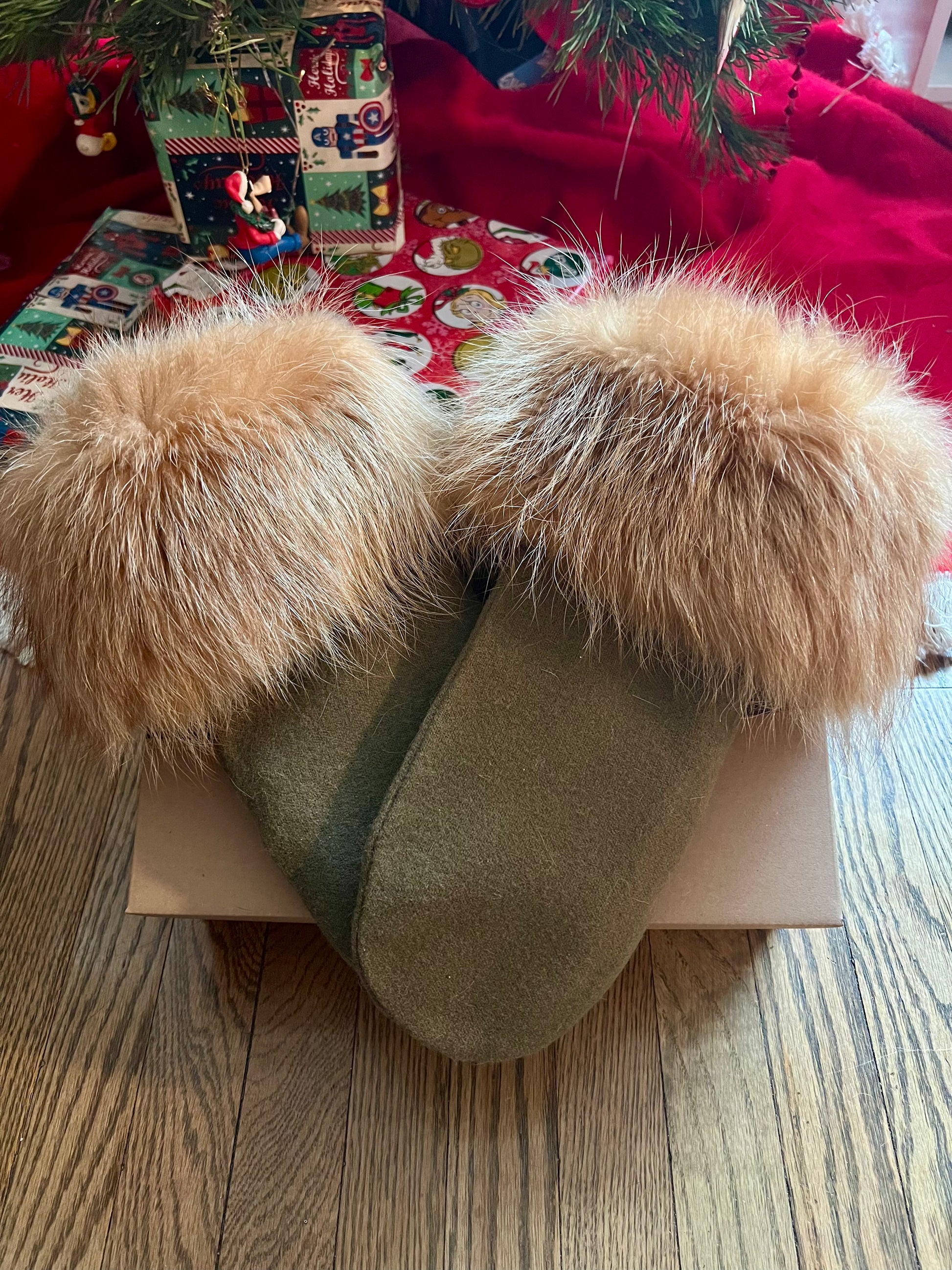 Handmade Fox Trimmed Wool Mittens
